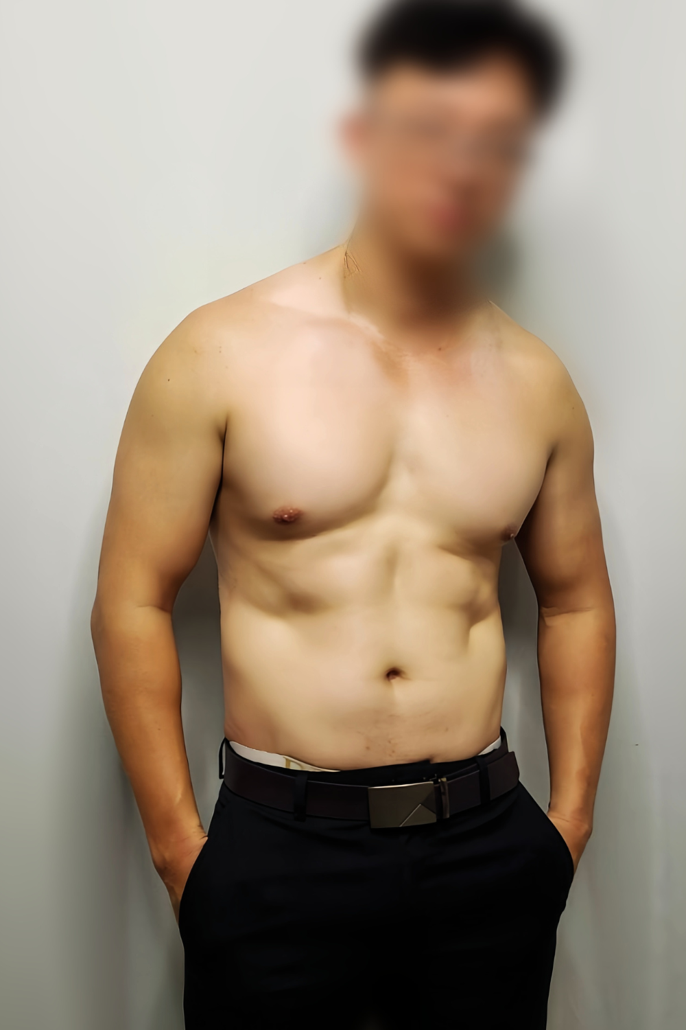 戴眼鏡的斯文猛男,笑容溫暖親切,散發十足親和力。結實身形、飽滿胸肌,展現穩重又有安全感的男體魅力。擁有熱愛游泳的運動習慣,個性隨和健談。按摩手法紮實穩定、節奏自然,能有效舒緩壓力,是你身心放鬆的安心之選。